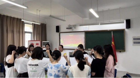 6月12日,英语师范专业员工党支部以“党员最后一课”为主题,举行了本月的党日活动,希望毕业生党员在今后的生活、工作实践中能够不忘初心,牢记使命,继续践行党员责任担当。活动过程中,支部书记吴小慧表示了对毕业生党员未来的美好祝愿以及对于未来规划的鞭策提醒。当天恰逢所有员工党员入党纪念日,在特别的日子里,党员们一起过政治生日,收获专属政治贺卡,并在便利贴上写下自己的愿望,将所有人的愿望拼凑成党徽的形状,充分体现了全体党员坚定不移听党话跟党走的决心。