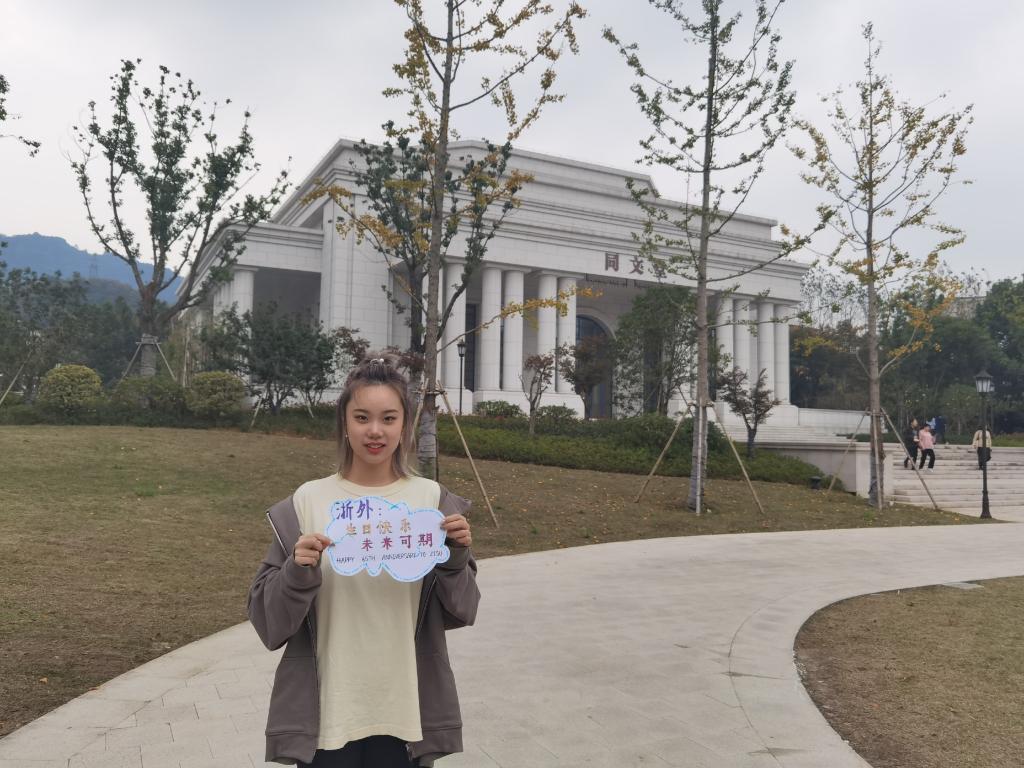 母校几十载,培养才无数,又到校庆日,学子来祝福。翻译系员工党员们纷纷献上自己最真挚的祝福,真情实意,溢于言表。例如员工党员中,彭蓝萱祝浙外“生日快乐,未来可期”;翁奇蕊祝浙外“生日快乐,华章永续,前景辉煌”;张连成祝浙外“更上一层楼”;施思表示“严师恩,挚友情,恩深情笃共谱母校新篇”;陆钱方表示“不忘初心、牢记使命;风雨六五载,砥砺再出发”等。