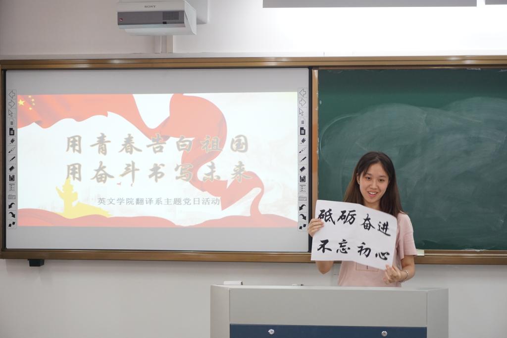 为庆祝中华人民共和国成立70周年,激励员工党员增强家国情怀,激发员工党员的责任担当。近日,beats365唯一官网入口官网翻译系员工党支部开展“青春告白祖国 奋斗书写未来”主题党日活动,展示新时代青年与国家共奋进的爱国情和报国志。