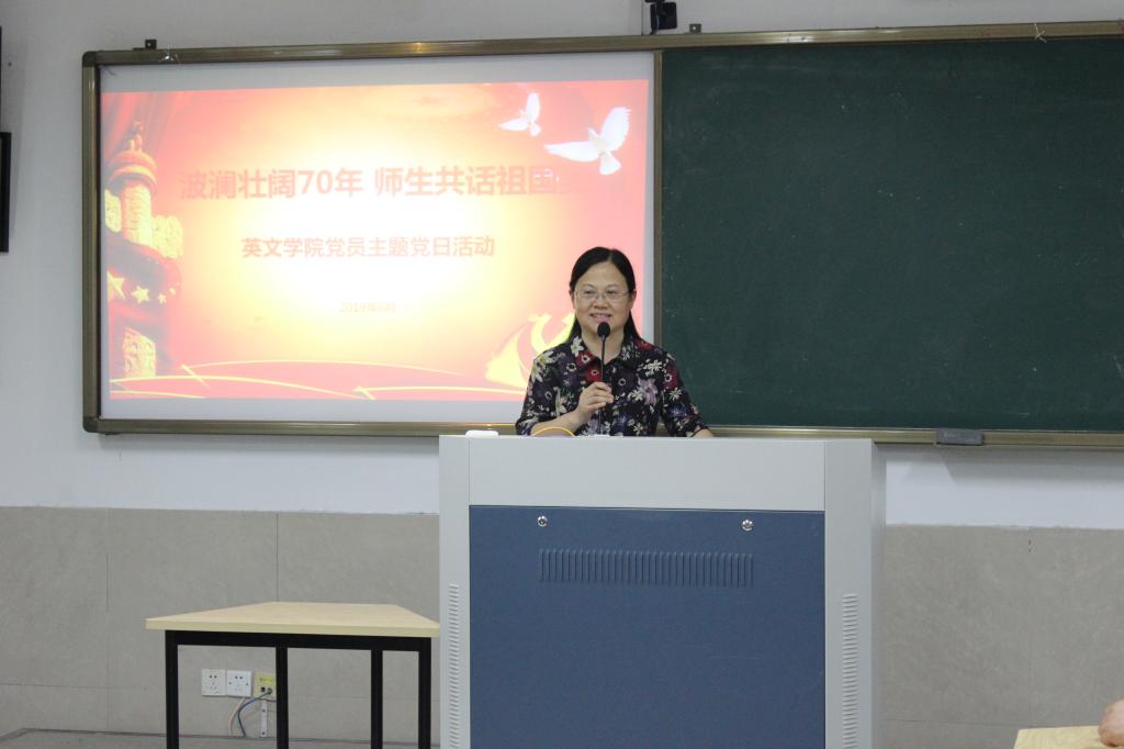 活动中,教工党员回顾了新中国成立70年来所取得的伟大成就,畅谈了新中国成立70年来的巨大变化,并分别结合自身成长和奋斗经历,从为什么要学习、怎样实现自己的人生梦想等交流认识和体会。员工党员们则表示要立鸿鹄志,做奋斗者,用实际行动展现当代老员工的时代风采,爱浙外,爱祖国。公司党总支书记周彩英充分肯定了本次主题党日活动的意义,她强调,今年是新中国成立70周年,希望教工党员不忘初心,做有温度的教师,员工党员能树立目标,做好自己,用实际行动来爱校、爱国。