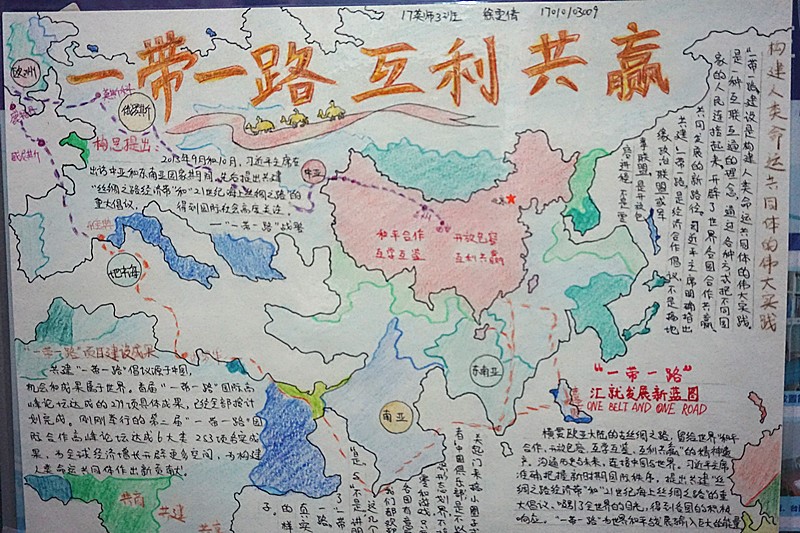 活动中,英文学子通过了解中国历史,将所思所悟所得绘制成手抄报的形式展出。色彩斑斓,排版清晰的手抄报中,凝聚的是同学们对“不忘初心”、“榜样力量”、“红船精神”等主题的认识与感悟,是对新时代国家政治的关注与思考,凸显着他们投身新时代建设的决心。