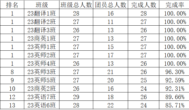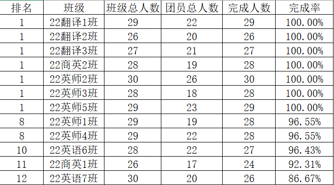 完成率百分百班级榜单