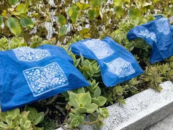 制作蓝夹缬布料后,来自23英师2班的朱丽颇有收获,“徐嫣老师为我们介绍了许多植物染料,为我们打开了新世界的大门,其中马蓝这种染料做药材时,有一个我们都耳熟能详的名字——板蓝根,我突然感觉遥不可及的非遗是能与我们的日常生活联系起来的,这次实践让我更想了解非遗了。”