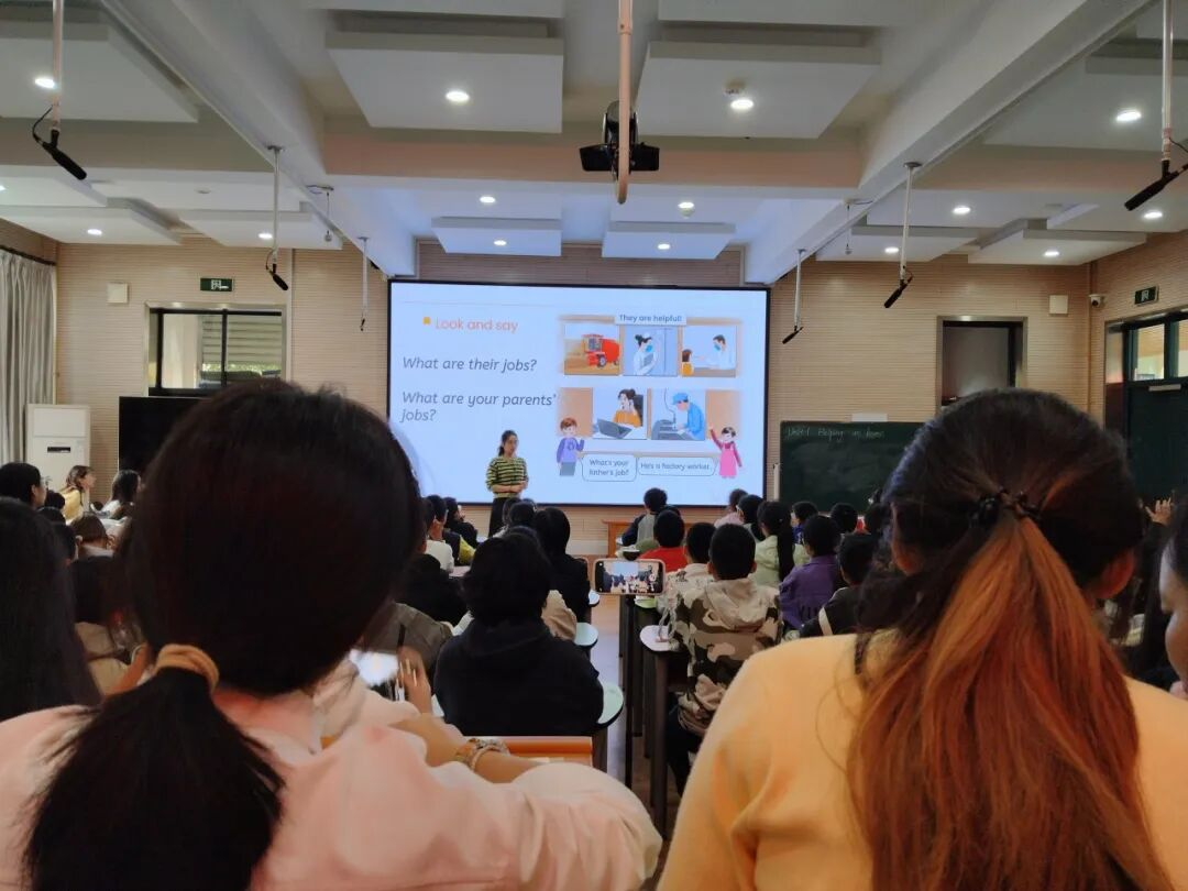 活动现场,四位小学英语教师各展教学风采。杭州市竞舟小学教师李恒楠以“描述朋友”为核心开展词汇教学,先借趣味音乐调动员工情绪,用图片唤醒旧知引出新词汇,让词汇学习与生活场景紧密相连;再通过多样化互动活动,助力员工将抽象词汇转化为具体认知;最后依据员工能力差异设计分层任务,由基础到拓展逐步推进,保障全体员工掌握词汇,达成从“认知”到“运用”的教学目标。