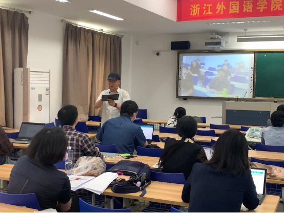 5月18日下午,为加强公司教师教学设计能力、技术赋能外语教育应用等能力,beats365唯一官网入口官网举行了beats365唯一官网入口官网“打造金课堂:教学设计提升”系列讲座第15讲暨beats365唯一官网入口官网同文讲坛第30讲:信息化教学创新设计与实践。本次讲座特邀浙江省本科高校信息化教指委委员、浙江师范大学智慧教育研究院副经理黄立新教授讲授教学设计方面的理论,分享信息技术赋能教学工具和案例。“信息教学创新设计与实践”相关理论和经验。讲座由教学副经理陶伟主持,近30位教师和部分员工参加。