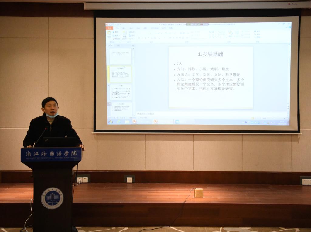 翻译研究所所长杨平教授从科研机构的愿景和使命、主要研究领域与研究方向、近年来主要研究成果、存在的主要问题、未来努力的方向等五个方面介绍了翻译研究所的现状及未来的导向。他详细阐述了今后三年的奋斗目标,对于当下和未来的学术工作具有较强的指导意义。