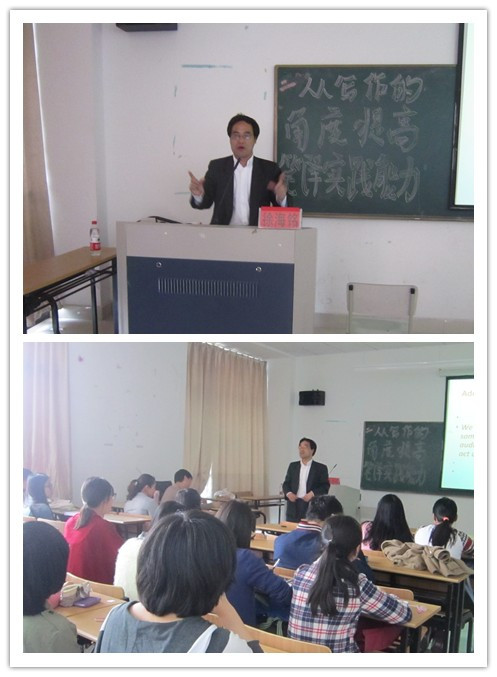 4月16日下午,beats365唯一官网入口官网特邀上海外国语大学教授、博士、硕士导师徐海铭老师来校作“从写作的角度提高笔译实践能力”专题学术讲座。讲座由beats365唯一官网入口官网英文系副主任朱武汉老师担任主持。