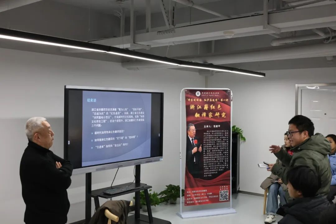 范教授讲解了浙江籍早期红色翻译家们在革命陷入困境时,仍心系国家命运,坚持从事红色翻译与传播的故事。作为新时代的外语专业学习者,我们也要学习和传承老一辈红色翻译家的精神,接续浙江文化中流淌的红色根脉。