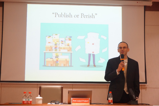 讲座开始,Neidorf教授首先围绕为何要在高级别期刊发表论文这个问题进行了五点陈述:首先是提升思维水平,高级别期刊对论文质量的高要求使研究者不得不对自己的观点进行修改完善。其次是提升生活品质,在高级别期刊发表有益于拓展学术人脉,结识更多学术同仁。第三是提升教学水平,学术研究水平的提升也有益于教学水平的提升。第四是提升研究者所在大学的整体科研水平。一旦在高级别期刊发表,研究者将成为其他人效仿的对象,最终提升该校科研整体水平。第五是提升一所大学的文化伦理标准。由于高级别期刊的高质量要求,有助于减少学术腐败。