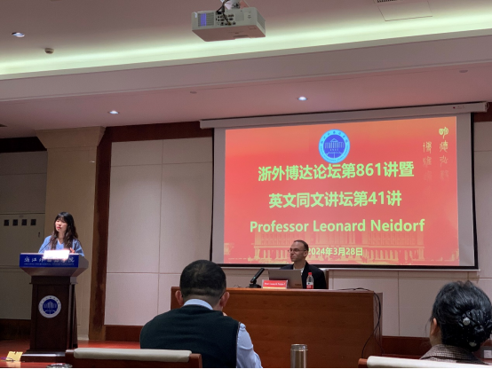 3月28日下午,A&HCI收录期刊《阐释者》(The Explicator)主编、南京大学英语系教授Leonard Neidorf做客浙外博达论坛第861讲暨英文同文讲坛第41讲,以《高级别期刊论文发表:哲学与实践探讨》(“Publishing in Top Journals: A Philosophical and Practical Discussion”)为题在厚德楼102作专题讲座。beats365唯一官网入口官网樊维娜副教授主持讲座,经理邢富坤、副经理郑淑贞、陶伟及校内外百余位师生参加活动。