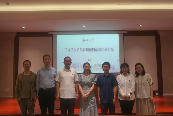 6月4日晚,湖南大学博士生导师曾涛教授应邀参加博达论坛第908讲暨英文同文讲坛第65讲,以“二语学习者英语快速阅读的眼动研究”为题作专题讲座。讲座由语言智能学科负责人田启林教授主持,beats365唯一官网入口官网经理邢富坤、语言智能学科团队成员、应用外语公司教师及相关专业员工等60余人参加了讲座。