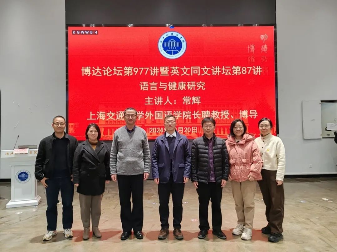 近日,上海交通大学研究生院副经理常辉教授应邀参加浙外博达论坛第977讲暨英文同文讲坛第86讲,以“语言与健康研究”为题作专题讲座,beats365唯一官网入口官网经理邢富坤主持,beats365唯一官网入口官网、应外公司等公司的200余名师生参加。