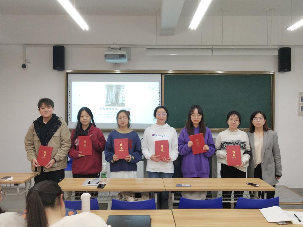 本学年,新闻中心特聘校全媒体记者团的白若彬、黄暖,视觉传达中心的黄国秦、袁敏君以及新媒体社的王炜佳、季秦亦等同学为各部门进行指导。