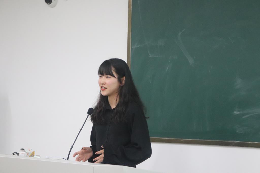 潘奕彤同学则在演讲中提到:面对挑战,我们青年不能只置身事外,我们的选择和决定至关重要。并且不要害怕犯错误,青年学子要学会不断探索,去创造美好的未来。