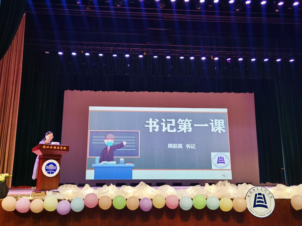 随后,周书记向全体新生授开学第一课。授课伊始,周书记再次热情欢迎新生的到来。对于新生,她提出四点:第一,理想信念是追梦人的精神支柱;第二,砥砺奋斗是追梦人的力量源泉;第三,诚信友善是追梦人的价值标准;第四,脚踏实地是追梦人的必然选择。周书记表示,和山脚下,四年光阴,希望大家好好运用这本《和山立志 立志英才》,奋力书写青春华章。