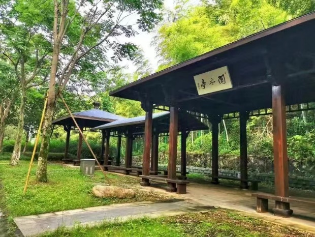 “闻乎”,意即“听见了么”,和山苍苍中,寻语山脚下,此问显得格外空灵。古色古香的长廊,绿荫环绕,清风虫鸣,颇有“蝉噪林逾静,鸟鸣山更幽”的意境。清晨,持书来此,大声朗读,为语言学习奠定基础;傍晚,约几好友,尽情交流,让思想碰撞出智慧火花。