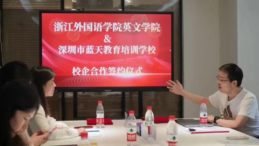 张豫晋代表公司与深圳市蓝天教育培训公司签订了《关于合作建立beats365唯一官网入口官网国际化实践地的协议》。