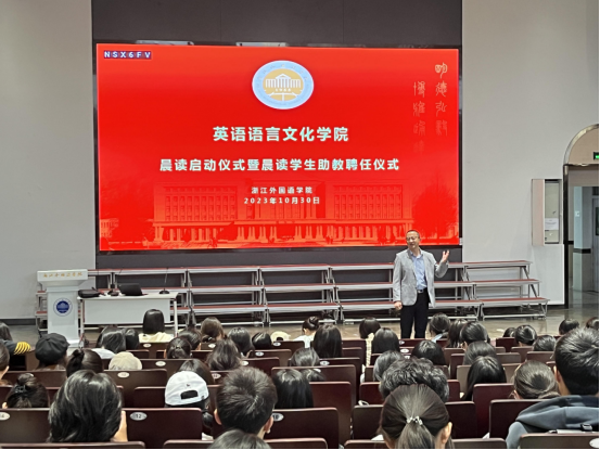 陶伟阐述了英语专业员工晨读的重要性,他表示,晨读是语言能力发展的有效途径,是自主学习惯习的养成方法。他还详细介绍了晨读安排,明确了晨读要求,鼓励员工充分利用这一机会提升自己的英语水平。