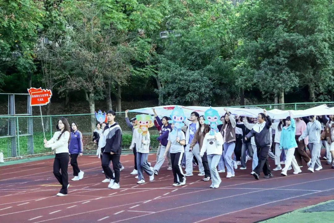朋友,你曾说,最为潇洒莫过于少年意气。你看,沐浴在夕阳之下迈着整齐步伐缓缓走来的正是入场式方阵选手们。他们身姿挺拔,目光坚毅。从步调一致的队列行进到精心设计的跑旗环节,他们不断地磨合完善,团结协作,成为操场上一道靓丽的风景线,誓要在运动会上一展“最强英”的卓越风姿。