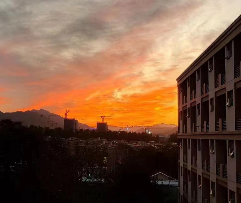 进入大学以后,我参加了各种活动,比如员工志愿者、组织团建、观看女子足球赛……在这些活动中我收获了友谊,老员工活变得多姿多彩!记得结束了满课的一天后,经过楼道间,一抹亮红色吸引了我的目光。转头一看,红黄的夕阳映入眼帘。朋友圈里纷纷跳出夕阳的照片。不同地点,不同时间,不同视角,大家交流着夕阳的美。这成为了我在浙外十分难忘的瞬间。