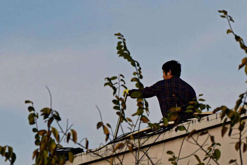 为守浙外灯火的电力工人