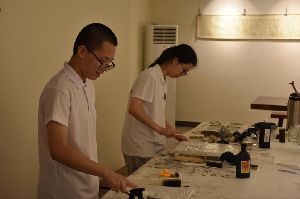 团队成员正在体验非遗元书纸的制作