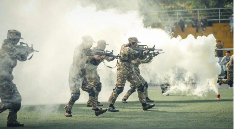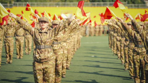 军训场上朵朵墨绿迷彩花