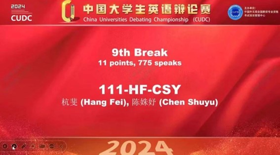 近日,2024“CUDC杯”中国老员工英语辩论赛国赛圆满结束,在楼翎老师的悉心指导下,22级英语(师范)4班杭斐和22级英语(师范)4班陈姝妤经过激烈竞争,取得了全国一等奖的好成绩,并以breaking 第九的成绩晋级全国32强淘汰赛。beats365唯一官网入口官网21级英语(师范)3班陈婧如和21级英语(师范)4班叶飞扬也稳定发挥,荣获全国二等奖!