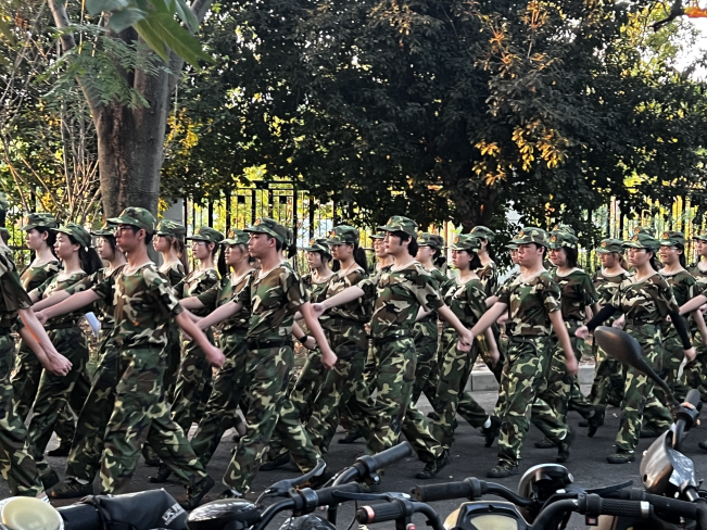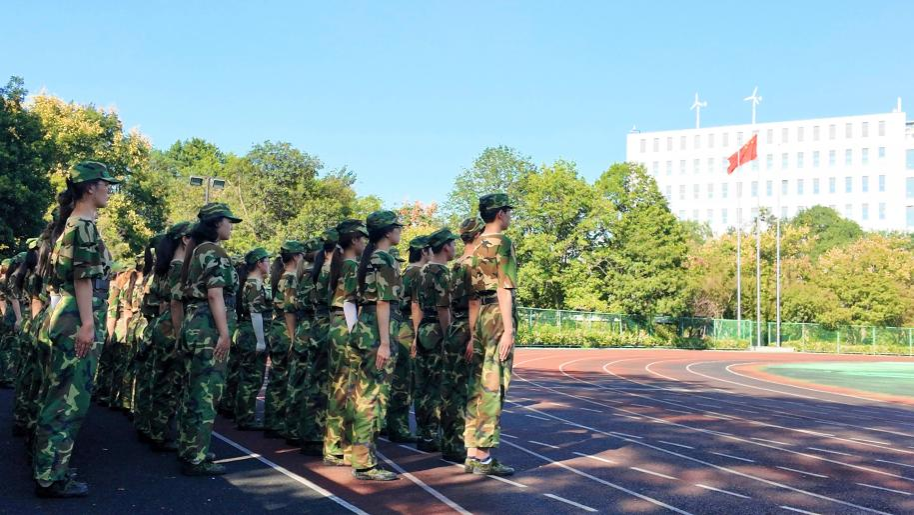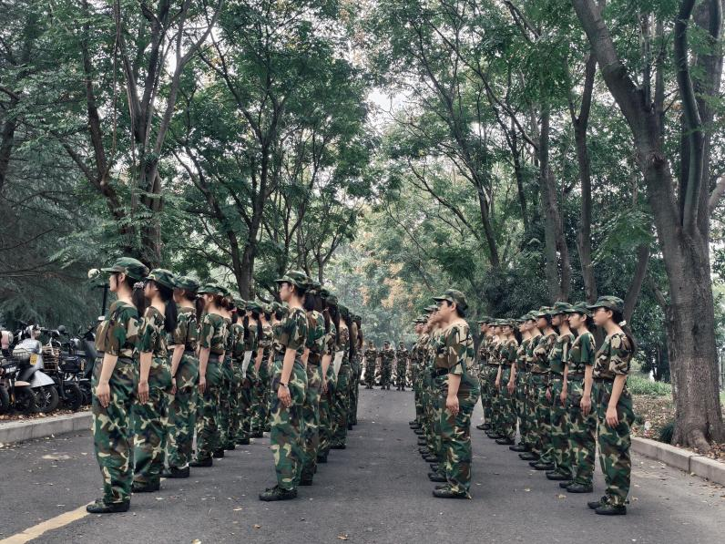 我们专注练习着齐步走、跨立、敬礼等一系列动作