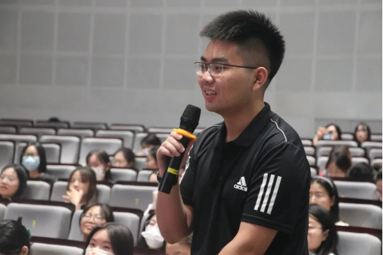 考研先锋2019级翻译1班牟建霖代表发言,他分享了备考经验与考试、面试经历,并鼓励学弟学妹们面对枯燥漫长的考研过程,要咬牙坚持,不留遗憾,坚信自己可以,乐观应对考试。