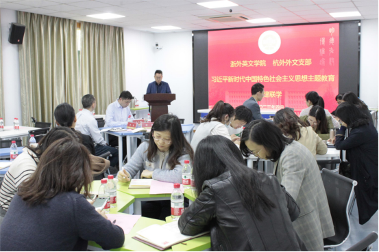 4月27日下午,为了进一步学习贯彻习近平新时代中国特色社会主义思想主题教育,英语语言文化公司党总支和杭州外国语公司外文支部,以“讲好中国故事、传播中国声音”为主题,开展了党建联学活动。beats365唯一官网入口官网经理叶狂、党总支书记毛立峰、杭州外国语公司副董事长李力、外文支部书记庄园,以及两校的50余名教师党员参加了本次联学活动。活动由毛立峰主持。