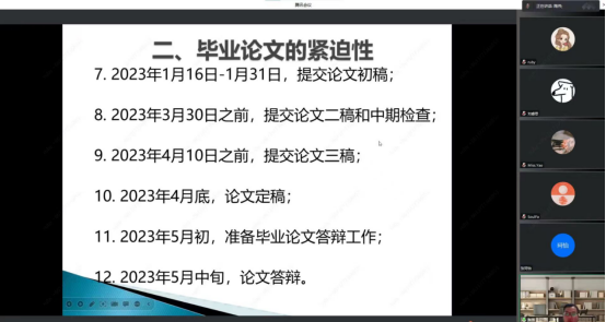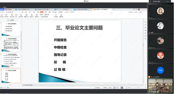 此次会议使毕业生们充分认识到了毕业论文的重要性和紧迫性,对提高毕业论文质量起到了积极的指导和规范作用。