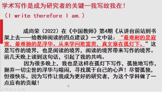 最后,刘老师和大家分享了成为一名研究型教师的意义。鼓励同学们把自己的声音带给更多的人,促进员工核心素养发展,成就赋权同行教师,对社会、对国家教育事业奉献自己的力量。