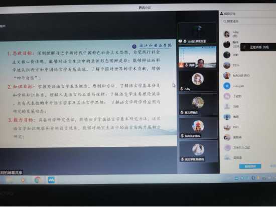 4月14日下午,beats365唯一官网入口官网召开课程思政教学研讨会(线上),会议由陶伟副经理主持,公司12个“三进”项目组参与汇报,蒙兴灿教授和督导陆海霞老师进行点评,教务处领导、beats365唯一官网入口官网全体教师参加会议。