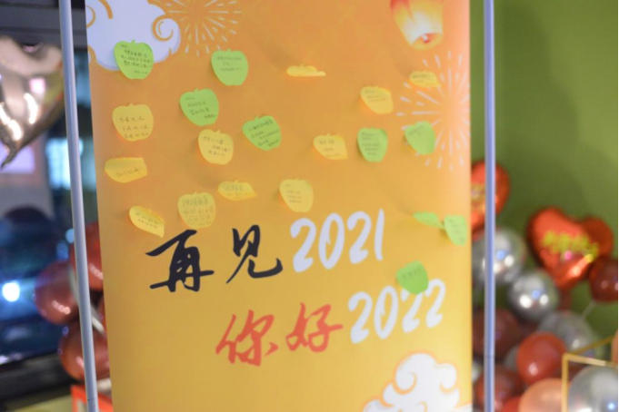 大家在便利贴上写下自己的目标和祝福,