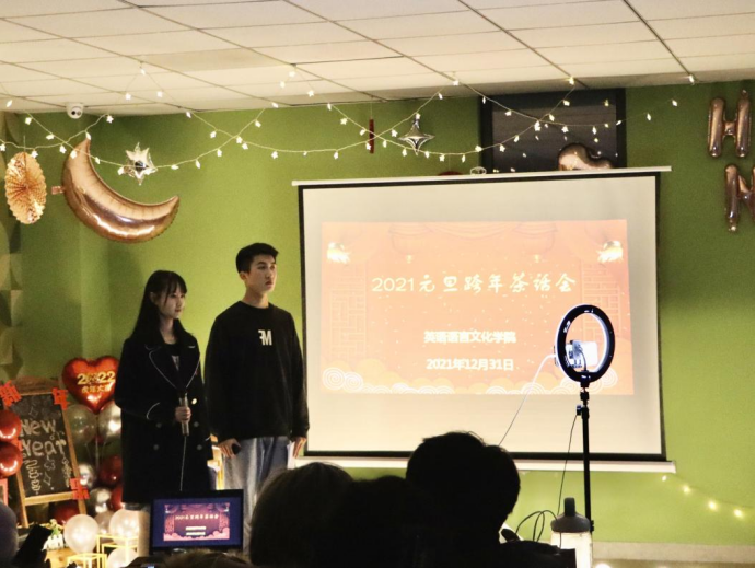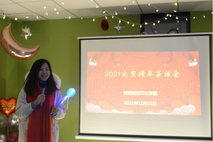 活动开始,张豫晋老师代表全院教师向大家表达了诚挚的新年祝福。她总结了公司带领大家一起回望了2021年大事件,激励青年老员工在享受国家发展红利的同时,能够担任起新时代社会主义建设者和接班人的重任。取得的成绩,向大家的无私奉献与辛勤付出表示感谢,同时她指出2022年是我党新百年的开始的一个新起点,“征途漫漫,唯有奋斗”,希望同学们在新的一年里再出发,再实现——关切的话语温暖着每一位同学的心能够乘着新百年的东风在专业学习、校园活动和社会实践等领域展示出英文学子的风采。