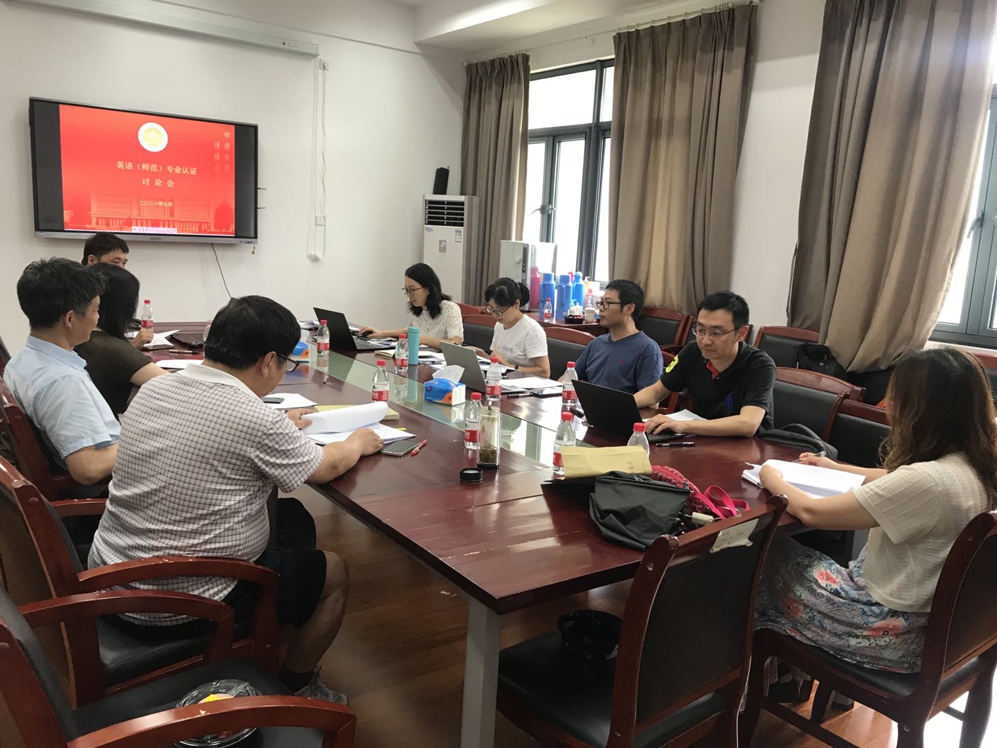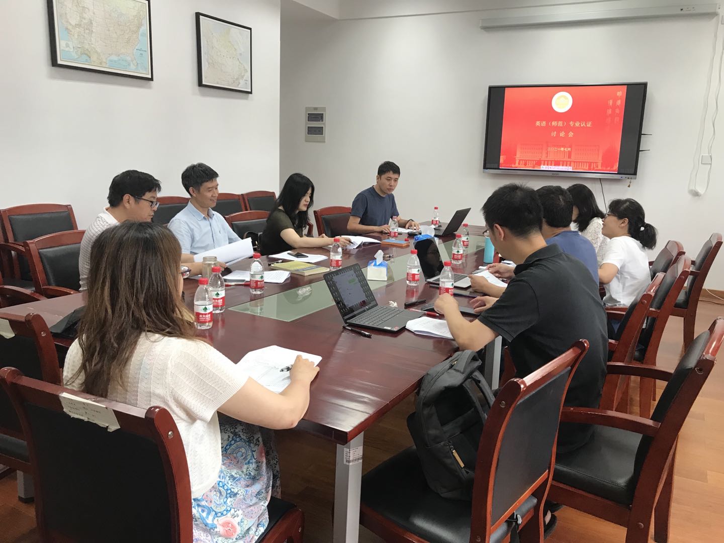 7月26日,公司召开英语(师范)专业认证申请书撰写讨论会。公司党总支书记、副经理、英语系系主任参加了会议。会议还邀请了公司教务处、教学评估中心、教育公司的领导到场指导。