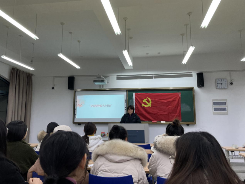 此外,支部成员围绕现实中餐饮问题,开展“文明用餐大讨论”。新党员叶潇璟针对目前打包餐盒,提出打包物资绿色化想法;张卓娅同学建议不仅在制度上需要下功夫,更需要通过教育活动,从孩子抓好勤俭节约意识养成;林心怡同学则提到借助师范专业,可以将勤俭节约小故事翻译汇编成英语绘本,形成特色教案。