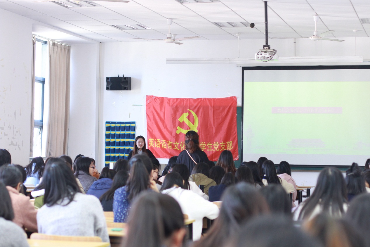 本次学习活动主要分成三个部分,分别由英语系员工支部的朱慧琳同学,商务英语系员工支部的胡颖同学以及翻译系员工支部的党艺嘉担任主讲。