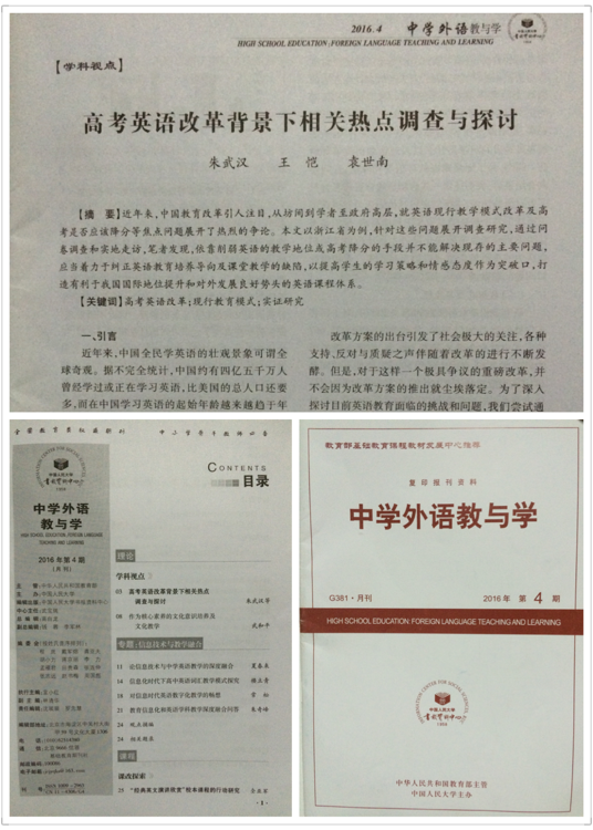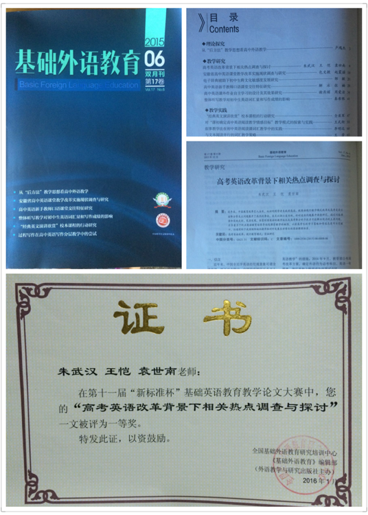 日前,由beats365唯一官网入口官网英语系朱武汉博士、2012级英语师范专业员工王恺、袁世南共同撰写的题为“高考英语改革背景下相关热点调查与探讨”一文荣获由全国基础外语教育研究培训中心、《基础外语教育》编辑部联合主办的第十一届“新标准杯”基础英语公司产品论文大赛一等奖。论文在《基础外语教育》2015年12月双月刊上刊印。2016年4月,教育部主管、中国人民大学主办的国家级核心期刊《中学外语教与学》全文转载刊登该论文。这是英语师范专业师生在论文领域斩获的一项殊荣。