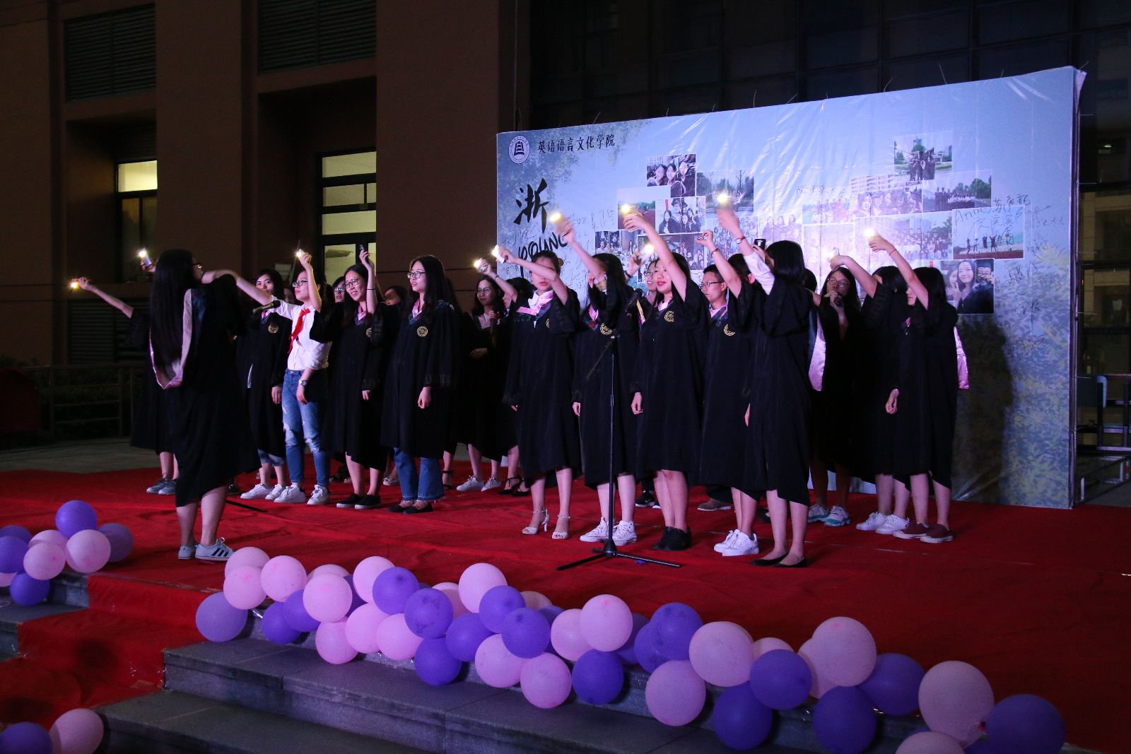 晚会情浓在同窗,师生情谊别样重。毕业生代表王航的致辞拉开了晚会的序幕,她对校园生活的依依不舍,对同学的感激与留恋,对老师们的衷心感谢,完整诠释了属于毕业生们的老员工活。随后的视频回顾,老师对每位毕业生的殷切希望与嘱托,更让每一位毕业生铭记“我是一名浙外人”。