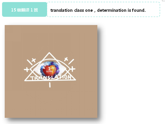 班徽介绍:1.班徽总体上体现了you are the apple of my eyes 你是我的掌上明珠,说明我们班的每一个人都是我们班级的掌上明珠,每一个人都是独一无二的存在2.班徽中间是一只眼睛,也恰好代表了我们翻译班拥有敏锐的洞察力3.班徽外圈的一个三角形,三角形是最为稳固的形状,体现了我们15翻译1班是一个坚不可摧的整体4.中间苹果外圈是代表我们翻译1班的宇宙,在外圈的+1是指新的元素,体现了在我们翻译1班的小宇宙中,不断有新的元素融入,时刻精彩!