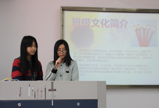 评选活动中,各班代表以PPT、展板、节目等多种形式向大家展示了各自的班级特色。别出心裁的班徽设计、积极向上的班级口号、团结友爱的班级活动给人留下了深刻的印象。每个班级都是独一无二、充满活力的集体。经过现场评委及观众的打分,最终,15英语师范2班获得了本届班级文化建设评选活动一等奖。