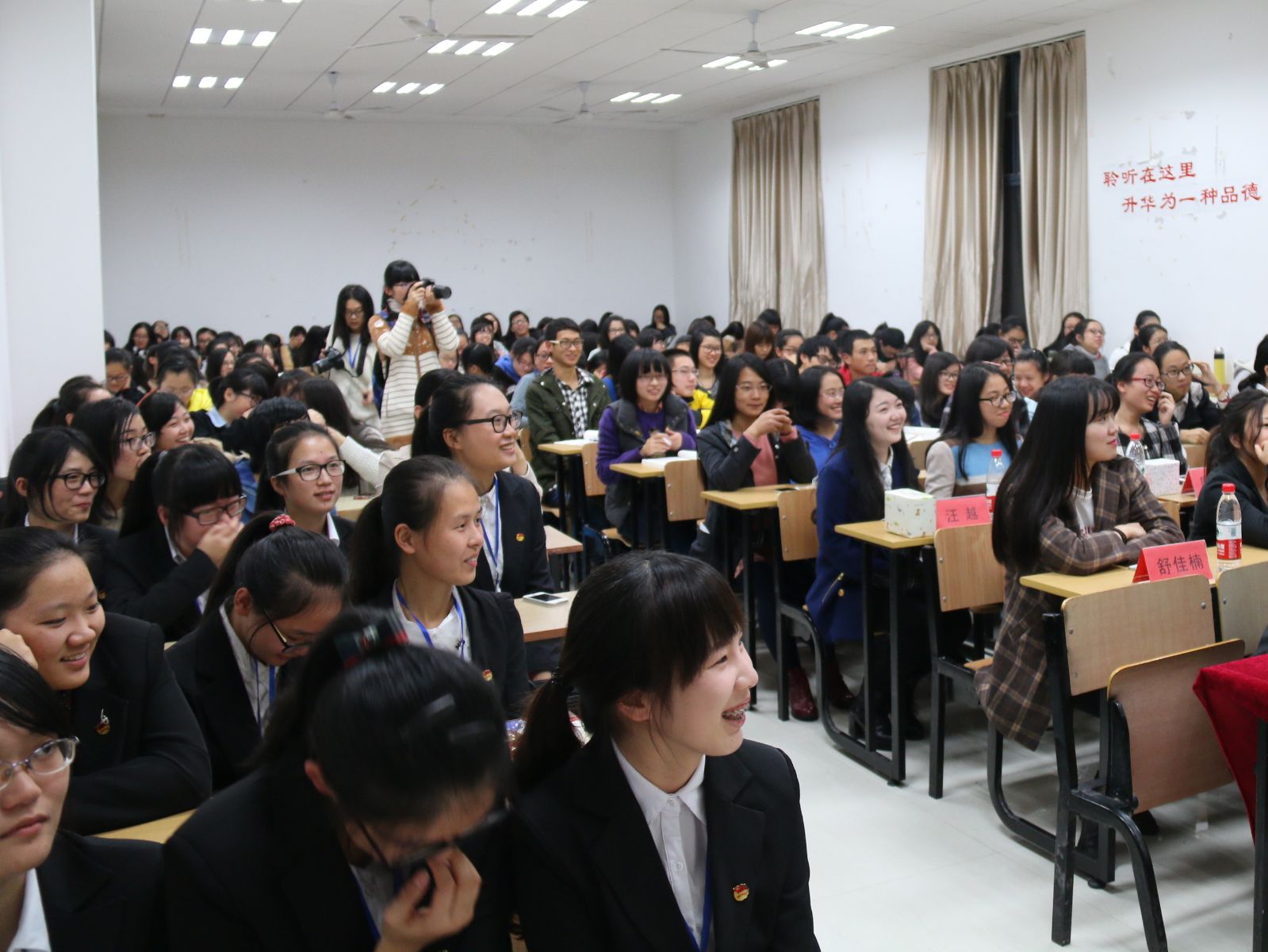 国家奖学金获得者、连续6学期获一等奖学金的“最美学霸”俞佳晖告诉大家如何游刃有余地在学习和员工工作中管理时间。“脚踏实地是最重要的学习法宝”,她鼓励大家“真正静下心来去享受读书的愉悦和学习带来的满足感”。