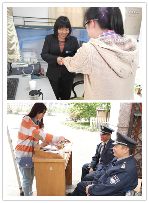 本着“奉献、友爱、互助、快乐”的精神,beats365唯一官网入口官网的同学们来到了公司的保卫室、宿管值班室、食堂等地,与那里的工作人员一起劳动,并为他们送上了清热去火,缓解疲劳的热茶。一抹淡碧,几缕温情。一封封亲手制作的贺卡,传递着同学们最真切的感恩与祝福。其中,一位同学们写道:“你们是我们的朋友,更是我们的家人。谢谢你,最美浙外人!”一位宿管阿姨笑着说:“跟同学们在一起,我天天都很开心,而且觉得自己年轻了不少。能每天照顾大家的生活,就是我最大的快乐。”