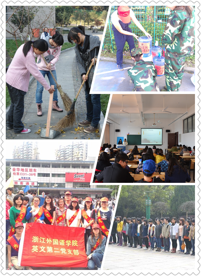 除了开展一系列服务社会的实践活动外,员工党支部一直将理论学习和思想政治教育摆在首位,制定了适合本支部的“单周自主学习,双周集体学习”的理论学习机制,并在新生始业教育中开展党建知识介绍、培训班级团支书、读十本有益书籍、经济社会热点问题大讨论等系列专题研讨和主题学习相结合,全方位、多角度提高员工党员理论学习效果和质量,创新了支部理论学习新局面,提高了员工党员理论修为,增强了基层党组织的凝聚力和战斗力。英文员工支部将一如既往地以创新的思维、努力的奉献、果敢的行动来践行时代先锋精神。