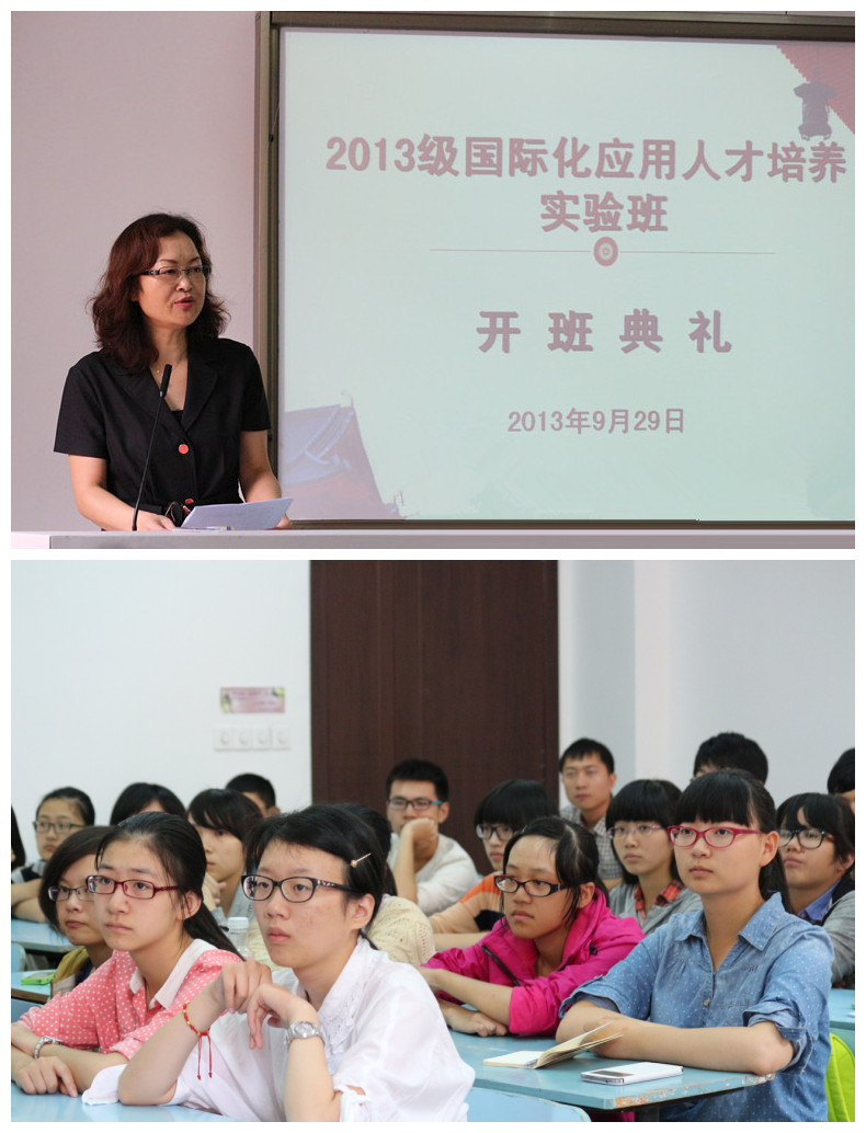 9月29日,2013级国际化应用人才培养实验班开班典礼在小和山校区举行。副经理郑亚莉,教务处、beats365唯一官网入口官网负责人,班主任及部分任课老师出席了开班典礼。