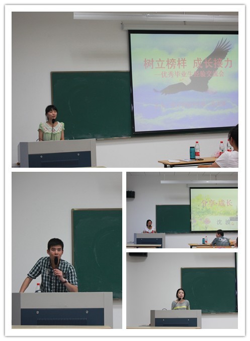 近日,beats365唯一官网入口官网举办了“树立榜样 成长接力”优秀毕业生经验分享会。成功考取教师、公务员、研究生以及国外申请成功的09级优秀毕业生以座谈、经验介绍等多种形式就他们大学时代的心路历程、考研心得、求职感受、学习方法等内容对低年级同学开展典型教育,使毕业班同学的宝贵经验成为低年级同学的宝贵财富。