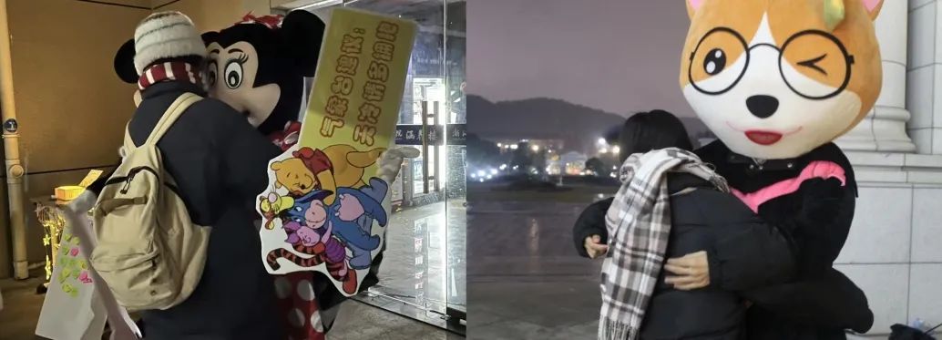 在与Alvin和米奇米妮的相拥中,情绪得到释放,压力得到缓解,祝福在无声中传递。