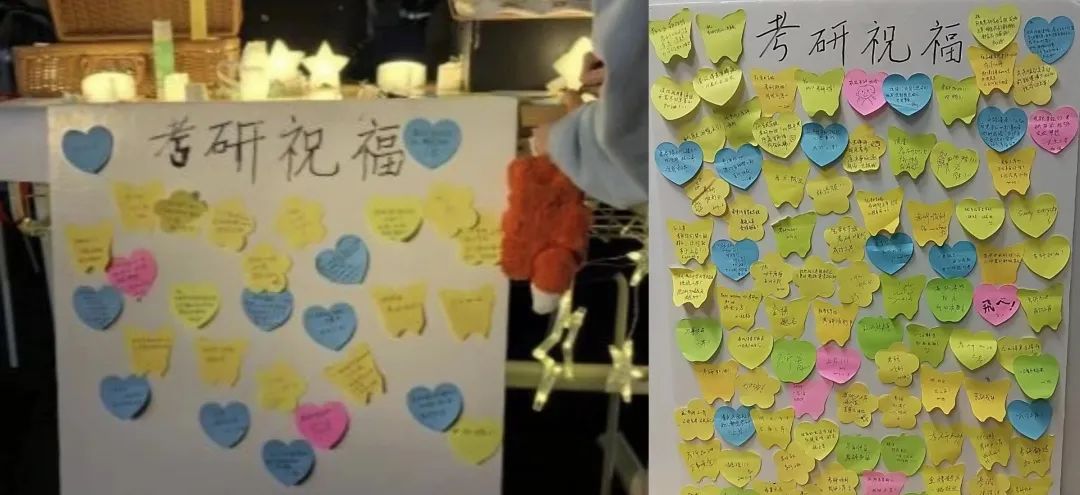 除此之外,同学们为考研学子留下真挚祝福,用笔尖传递温暖,用文字驱散冬日的寒冷。